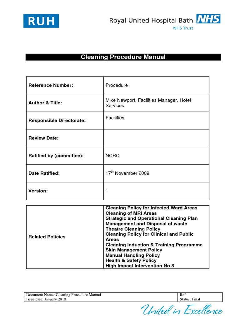 Cleaning Procedure Manual PDF Housekeeping National Health Service